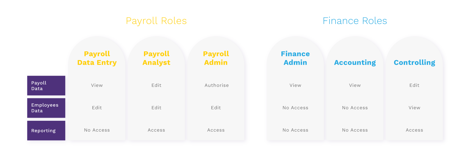 Below is a selection of the roles and accompanying access rights that can be set up in minutes on the Payslip platform